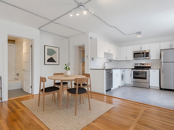 Original wood floors were combined with gorgeous modern kitchens that feature white shaker cabinets, quartz countertops, drop-in sinks, modern hardware, and energy efficient appliances. The bathrooms feature tilework throughout and designer grade low-flow fixtures. Washer/dryer combo units are included which allows you to start a load in the morning and come home to completely dry laundry without the need to do an additional step. Energy efficient heating and air conditioning Mini Split units throughout that will result in low electricity bills and optimum comfort. Not to mention closets with space you can use and onsite storage units available for your convenience.