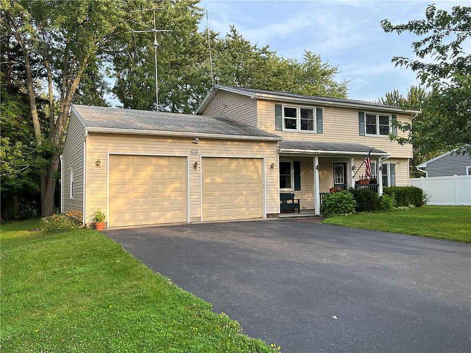 This Henrietta Home offer Tons of potential. This Charming Vinyl sided Colonial offers, 4 Bedrooms, 1.5 Baths, Spacious Living room with built-in book cases, Huge Kitchen and Formal Dining room. Off the 2 car Garage is a great flex space to possibly make into an amazing mud room with attached first floor laundry room. Outside offers a nice sized deck, spacious backyard and shed. Delayed Negotiations until Monday, August, 28th @ 1:00pm.
