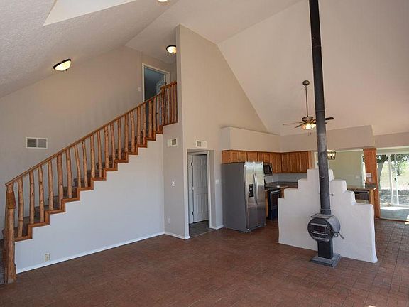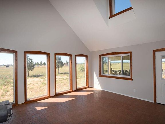 Terrific horse property. Adorable home on 10 acres, brick floors, interior wood and adobe accents, super efficient Orley woodstove, upstairs devoted to spacious master suite, downstairs is a large kitchen with granite counters, new water heater. 2 bedrooms, mud room, ample laundry room. Large windows throughout bring in light and showcase surrounding mountain views. Outside is a large barn with water, 4 stalls, tack room and hay storage, round pen and arena. Property is fenced and cross-fenced, two garden areas, paved road access.