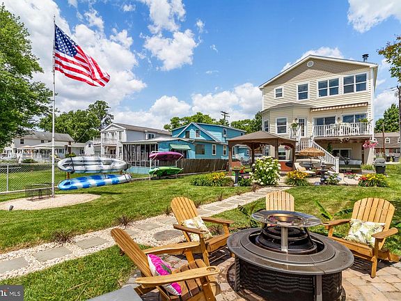 Boating and water enthusiasts will enjoy the deep-water pier equipped with a 20,000-lb lift, perfect for larger boats, and quick access to the Chesapeake Bay, and a separate launch for kayaks and jet skis. The property is ideally situated in a sheltered spot, providing protection from the open water's choppy conditions. Outdoor living is a breeze with a low-maintenance deck, a charming swinging sofa, a large gazebo, and a patio/fire pit close to the water's edge, offering diverse seating options in both sun and shade. The lush, tasteful landscaping features beautiful flowering plants, and the rip rap shoreline ensures lower maintenance than a traditional wood bulkhead.