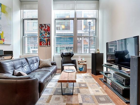 Chic 1 bedroom, 1 bath unit at the desirable Lafayette Lofts. Open concept living with great natural light from a generous wall of windows and soaring 15' high ceilings. The kitchen offers ample space for dining with modern cabinets and hardware, granite counters, stainless steel appliances and plenty of storage. Spacious living room has hardwood flooring and spectacular wall space for artwork; large enough area for home office!! Great size bedroom with upgraded closet and potential to add a loft space above!! Bathroom has custom pedestal sink, soaking tub and ceramic tile flooring. In-unit laundry with custom built closet above for extra storage! Additional secure bike storage based on availability. Convenient location to 93, Mass Pike and just steps to the Financial District, the Boston Common, Seaport, public transportation and endless shopping and dining opportunities! Adjoining garage parking for an additional fee.