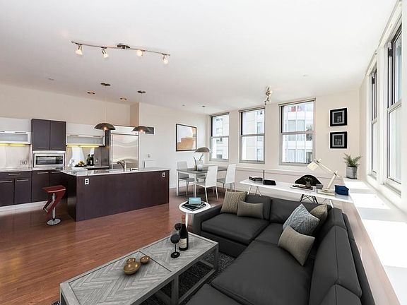 Ready to move in! Lafayette Lofts is a beautifully restored and uniquely redesigned condominium surrounded by some of Boston's best restaurants, shops and theater's. This sleek modern sun filled southwest corner open concept two bedroom two bath home features a tastefully designed chefs kitchen with granite counters, center island, and GE Monogram stainless steel appliances. The gourmet kitchen flows naturally into the living room/dining room combo. Located on the 6th floor this unit boasts 12 large windows, high ceilings, and is equipped with secure access via videophone. HW Floors throughout the living areas. In-Unit laundry and additional basement storage. Located in the vibrant Midtown neighborhood this condo has everything right at your fingertips. Next to the Financial District, Chinatown, steps to South Station, the Greenway, Boston Common, public transportation, Roche Brothers & Whole Foods. Direct building access to rental Garage parking. | 6- 12 months lease terms or more than 12 months avail. On site garage parking avail for rent. $200 move In-fee for security guard | First, security deposit + 1 months fee | Pets allowed. dogs up to 50 lbs|
