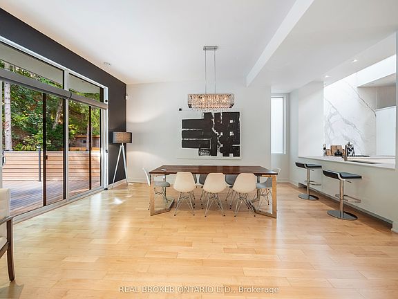 Step into a sanctuary of modern luxury and impeccable design! This exquisite 4000+ sq ft contemporary masterpiece, crafted by David Peterson Architect Inc., offers a unique blend of functionality and elegance. Featuring 3+1 bedrooms, 4 baths, and a lush garden atrium, this home is a serene retreat in a private woodland setting with breathtaking seasonal views. Located just minutes from downtown, the airport, and Bloor West Village, this rare offering boasts top-of-the-line finishes, including natural maple and Statuario accents throughout. Enjoy the convenience of Samsung and Bosch appliances, a custom sauna, a swim spa, an EV charger, and a separate suite perfect for in-laws or nannies. This freshly painted home truly offers a luxurious retreat for all members of the family!
