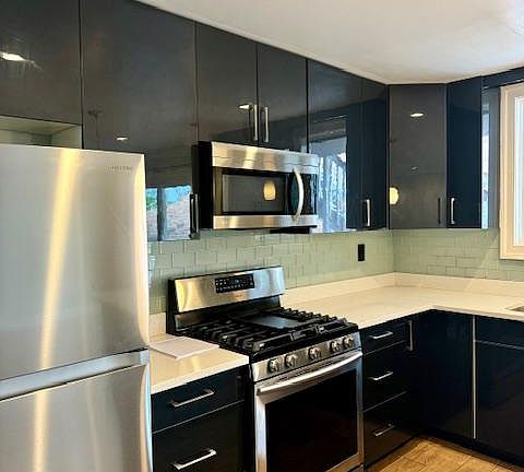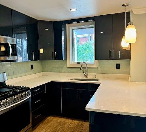 Unit #2 of this sleek tri-plex features a spacious open-concept layout, seamlessly blending the Living Room, Dining Area, and Kitchen, all enhanced by modern appliances, stylish lighting, fresh paint, and polished hardwood floors. The spa-inspired bathroom includes a walk-in shower with a rain showerhead. The unit's design is elegant, with crown moldings and recessed lighting throughout. You'll find two generously sized bedrooms, each with ample closet space. Step out onto the back deck directly from the Living Room for a perfect place to unwind. Convenient on-site laundry facilities (coin-operated) are located in the basement. One off-street parking space is designated for Unit #2 at the rear of the tri-plex. Ideally located for quick access to the city and the vibrant attractions of Mt. Washington. Pets may be considered. No smokers/No Section 8. Owner MAY consider a small pet for an add'l sec deposit of $250 & addl rent of $25/mth. No smokers. 1 yr or 2 yr lease options available. 1st mths rent of $1,250 ($1,230 if a two year lease) & sec dep equivalent to one month's rent due at signing. Rental app to be completed in full by applying tenant & submitted w/ $50/each applicant (nonrefundable) to run credit, background search. Parking spot off street in rear of unit. Coin operated laundry in basement for tenant's use. $15K pers/$100K liab req'd. Tenant to pay all utilities.