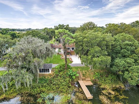 Are you looking for the perfect lakefront getaway! This home has a cute cottage appeal with 3 bedroom and 2 bath split level home with beautiful lake views from almost every room. This unique home has a large living room and spacious kitchen with plenty of cabinets and breakfast bar. Formal dining room with wood burning antique stove. Large picture window to view the picturesque lake. Master bedroom has ensuite bath. 2 additional bedrooms with shared bath. Downstairs has a single car garage. Additional detached garage for extra storage. This large 1/2 acre lot on Lake Byrd has a screened concrete room on the lake with a dock. This area is perfect for entertaining and afternoon picnics and parties. This home would make a great winter residence. Private backyard that backs up to the orange grove.Make an appointment today!