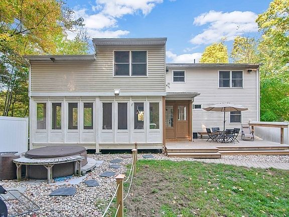 "Lake Life" YEAR ROUND! Within minutes to Pulpit Rock Pond, this 4 bd/2 bth colonial will have you swooning! With 4+ acres of room to play, this property comes complete with trails for ATVing and hiking! Main level shines! Open concept -updated kitchen h-lighted by custom cabinetry, oversized island with corian c-tops and ss appliances; DR boasts hdwd flrs and picture window w/ winter views of the lake! Spacious LR showcases w-stove insert & picture window! Convenient 1st floor bdrm w/ hdwd flrs and updated full bth complete the main level. 2nd flr features generous master w/ picture window and ample closet space. Two large secondary bdrms and updated full bath w/ dual vanity complete upper level. Lower level provides add'l entertaining space w/ gym/home office area AND family room! Outdoor feat. f-pit, garden, "man cave" shed, and surr. sound! Updates as per seller: Roof (2013), Kitchen (2009), Windows (2009), Buderus water tank (2009), Utica Boiler (2019). Showings begin 10/10!
