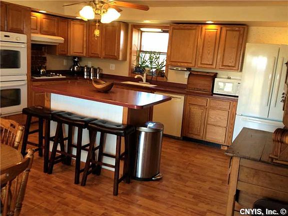 Country living at its best! Here is the chance to own your home in the country, close to the city of Oswego. Approximately 57.5 ac of open fields, pasture and woods with two ponds, large barn, tool shed, small animal barn, horse barn, auxiliary outside wood gasification furnace that provides heat and hot water. Attached two car garage, newly renovated house with country kitchen and food preparation isle, two baths and four bed rooms with a nice country style living room; Additional land available,refer to MLS #s349924,s349922,s349921.