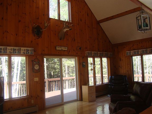 Contemporary Cape Chalet on a peninsula offering excellent views of the pond.House is located on 1.9 acres 386 WF on the Tacoma lakes (sand pond) which has above avg water. Pretty hardwood porcelain ceramic tile floors and granite counter tops. If your looking serene private property this is it.Excellent location near lewiston augusta brunswick freeport and portland 42 miles away. Interstate 95 and 295 only 12 miles away.