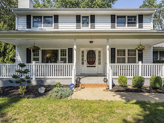 This center hall Colonial has a rocking chair front porch that overlooks a beautiful property w/mature trees located at the end of a cul-de-sac. The 1st floor of the home was recently renovated with a modern layout that opened the kitchen to the dining room & family room. The 1st floor bedroom & full bath offers a very desirable in-law suite option. The full basement has an additional family room, ample storage & walkout steps. Upstairs you will find 4 additional bedrooms all w/hardwood floors. Out back you will find a 32x29 deck that overlooks a spacious fenced yard & a 15x32 in ground heated pool with a waterfall. This property is surrounded by open space with federal land behind it & green acres land at the end of the street. The home also has a gas grill hookup & generator hookup.