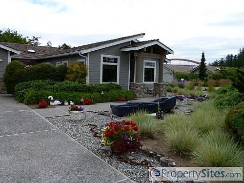 Complete info: http://88lummi.IsNowForSale.com - Unique Custom Craftsman home set on a large corner lot with view of Rainbow Bridge. 2 beds office/den & 2 bath in 1982 Sq Ft. Elegant tiled entryways which carries outside theme of post and beam construction inside as you enter. Spacious, open floor plan with wide hallways and skylights & Anderson Windows and transoms that provide great view of the professionally designed beach themed landscaping that surrounds the home.