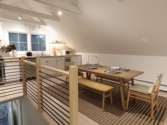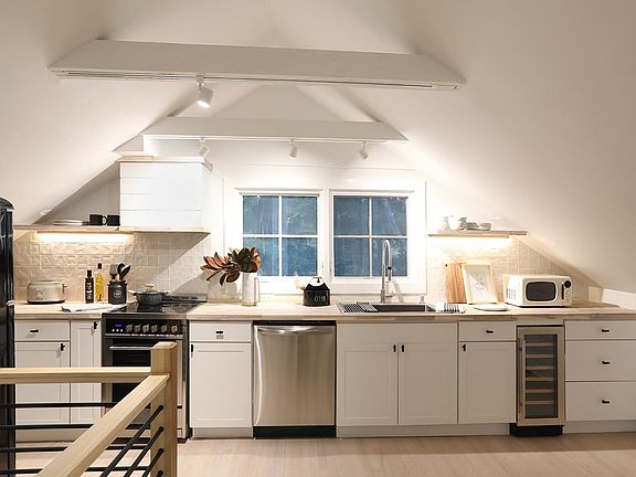 This loft in the heart of Woodbury, CT is freshly renovated by a well-known European design firm. Its open floor plan and vaulted ceilings makes 676 sqft feel like 1200. With One Bed and One Bath, this humble abode has all the style of a New York City loft. Equipped with all-new stainless steel appliances, home furnishings and bed & bathroom linens, all you need to do is bring a toothbrush! Conveniently located on Antiques Row, the apartment is within walking distance of various culinary attractions and the local organic market. Seasonal Rental: July 1st - September 1st @ $2,800/month One allocated parking space for renters. Utilities (Electric, Water, Oil) are the responsibility of the tenant. Washer and Dryer in the loft. Wifi included for tenants. Monthly Maintenance Fees ($100) include snow removal, landscaping and trash removal.