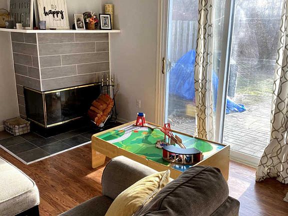- RoomLivingRoomFeatures: Floor - Wood, Fireplace - Woodburning, Sliding Door