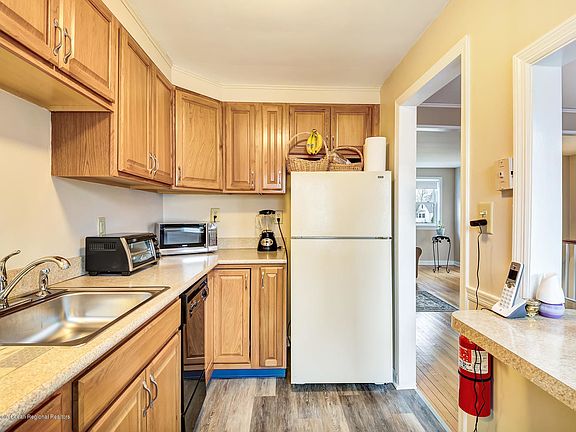 Wonderful 2 Bedroom, 1 Bath condo with a garage! 2nd Level unit with refinished Hardwood floors, updated kitchen, new bath vanity, pull down attic stairs for storage, locked basement storage, plus washer and dryer in unit. Freshly painted and ready to move into! Walk to great downtown Red Bank with shopping and restaurants. Maintenance fee includes Heat, water, sewer, gas, exterior maintenance, snow removal, trash. Close to Train to NYC, ferry to NYC and Ocean Beaches. Cats permitted but not dogs per association.