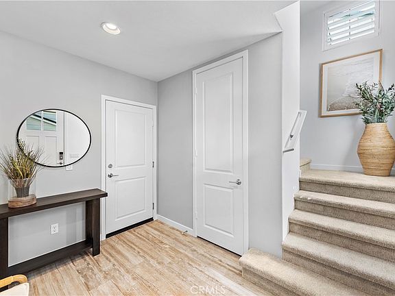 Welcome to 88 Marisol. This exquisite Trellis three-story, 3 bedroom, 3 ½ bathroom home located in one of Rancho Mission Viejo's most sought-after neighborhoods. Impeccably upgraded with every upgrade imaginable including oil rubbed wood plank floors, shiplap wrapped fireplace/media wall with high end electric fireplace, stunning wood beaded chandelier, custom glass barn doors and bifolding door to wrap around deck. The first floor is the perfect guest suite with plantation shutters, built-in closet organizers, focal chandelier, ensuite bath with gray cabinets, and tiled step in shower. Moving upstairs, the spacious, airy kitchen is open to the large family room. Upgraded gray shaker cabinets provide ample storage, while the stainless steel appliances and quartz countertop and breakfast bar with glass pendants offer a sleek modern look. Adjacent to the kitchen is the oversized great room, surrounded by windows flooding the home with light and showcasing the beautiful focal shiplap wall with fireplace, plantation shutters and woven seagrass shades. Just off the great room and outside the bifolding door, the wrap around deck provides a great outdoor space to relax or BBQ. Also on this level is the bonus /office space with custom glass barn doors, carefully chosen gold ceiling light and woven shades for a private work space. Upstairs the primary suite is beautifully upgraded with custom Roman shades and draperies, stunning overhead light, walk-in closet with custom organizers and ensuite with soaking tub, dual sink quartz topped vanity and step in tiled shower. The secondary bedroom on this level is generous and upgraded with custom closet organizers, custom roman shades and gorgeous ceiling light. Back downstairs this charming home is appointed with a charming white picket fence welcoming you to the wrap around yard with multiple entertaining spaces. This home is truly special and affords you the ability to walk to school and also many of the RMV Resort amenities including pools, gyms, parks and more!