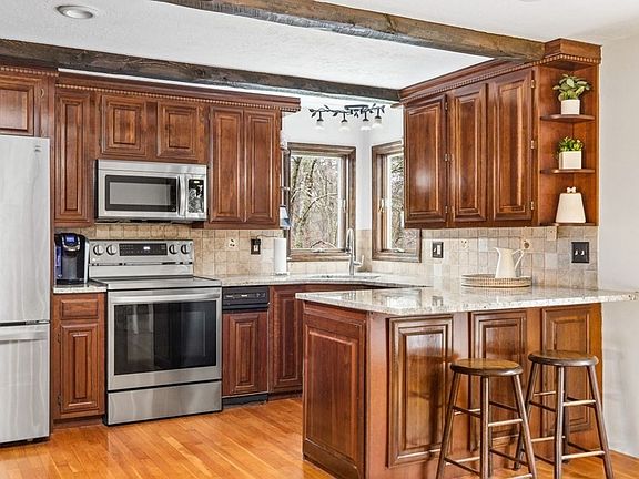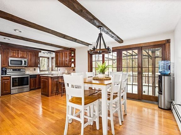 - Features: Beamed Ceilings, Flooring - Hardwood, Dining Area, Countertops - Stone/Granite/Solid, Kitchen Island, Open Floorplan