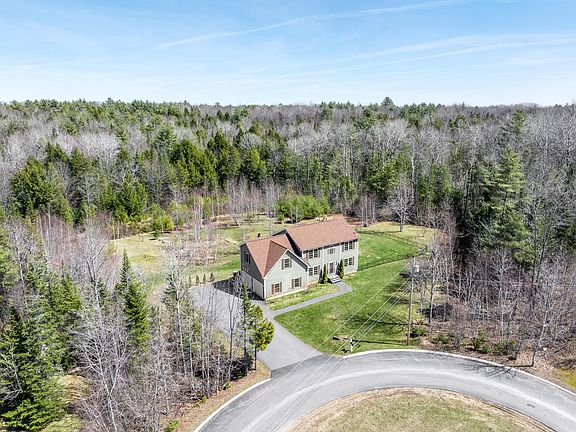 Custom built in 2016, this well-appointed 3-4 bedroom Colonial is located on a quiet cul-de-sac in one of Orono's most desirable neighborhoods. Set on 2.5 acres, the home offers both privacy and a strong sense of community just minutes from downtown and the University. The main floor features a bright, open-concept layout designed for everyday living and entertaining. The kitchen includes custom white cabinetry, a large center island with contrasting gray lower cabinets that add depth to the space. Black stainless steel appliances and granite countertops complete the look. A walk-in pantry provides ample storage, and the open flow into the dining and living areas makes gatherings easy. A three-panel sliding glass door brings in natural light and connects the interior to the fenced in private backyard. Off the main living space, French doors lead to a flexible room, currently used as a first floor bedroom, home office, library, or playroom. Hardwood and ceramic tile flooring run throughout the home, and every finish from lighting and hardware to trim and color choices were selected with care. Upstairs, the primary suite includes a jetted soaking tub, separate shower, walk-in closet, and sunset views from the landing. Two generous additional bedrooms, a full bathroom, and a 500-square-foot bonus room offer space for another bedroom, movie room, guests quarters, work, or recreation, options are limitless. The home includes a full, daylight walk-out basement with potential for future finishing, as well as a heated two-car garage with direct entry into the mudroom. An efficient hybrid on-demand hot water system supports low-maintenance living. Well maintained and thoughtfully designed, this property combines modern comfort with a peaceful, established setting.