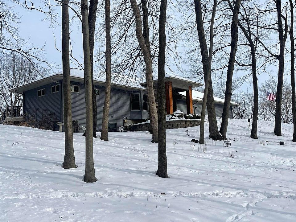Amazing home with spectaculars views of the Mississippi River! Custom built home with 5 bedrooms, 3 bathrooms and a 5 car garage. Garages are attached, heated and has easy access to the basement. Eat in kitchen has a large island. Formal dining room with access to the wrap around deck. Master bedroom with private bathroom and has access to the deck and the den. The lower level is finished with a large family, in-floor heat, a bathroom and 3 more bedrooms. Easy walkout access to a private patio. New roof, siding, paver sidewalk and exterior lights. Laundry room is conveniently located on the main level. Adorable garden shed stays.