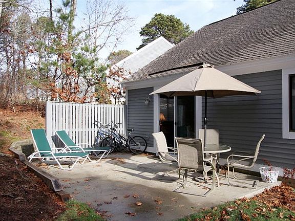 Drop your bags at the door and enjoy a Cape Cod Summer! This clean & tidy 2 bed/ 2 bath freestanding Ocean Edge condo has a open bright floor plan. An upstairs loft provides space for overflow or a den/office. A private patio with a built in storage shed, peaks out over the golf course. The shores of Blueberry Pond are right across the parking area. The Fitness Center, bike path and tennis complex are just steps away. Middlecott Village is situated on the quaint 6A side of Ocean Edge. Ocean Edge is a nationally renowned vacation destination and this property has a very strong rental history. Furniture and bikes included!