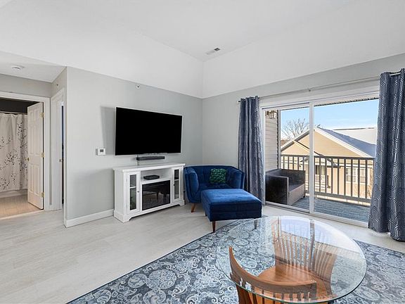 This move-in ready, single-level condo is located on the third floor at River Haven and offers a bright, open layout with vaulted ceilings. The airy living room flows into a dining area, offering plenty of space for a larger table or flexible seating arrangements. The functional kitchen, set apart by a half wall, stays open and connected, featuring in-unit stackable laundry discreetly located in a closet that can double as a pantry. A generously sized bedroom includes a walk-in closet, and a full bathroom completes the layout. Central air keeps the home comfortable year-round, and the living room opens to a private balcony for moments of fresh air and relaxation. An oversized, integral one-car garage accommodates parking and additional storage, with direct interior access to the unit for added ease throughout the year. In addition, a dedicated parking space is located just outside the garage. Residents enjoy access to a community center with a fitness room, outdoor swimming pool, and common gathering space with a kitchen, all overseen by a professional management company that takes care of day-to-day operations. A strong opportunity in Northern Rhode Island, this well-maintained condo delivers thoughtful design, easy living, and low-maintenance appeal. Make your appointment today!