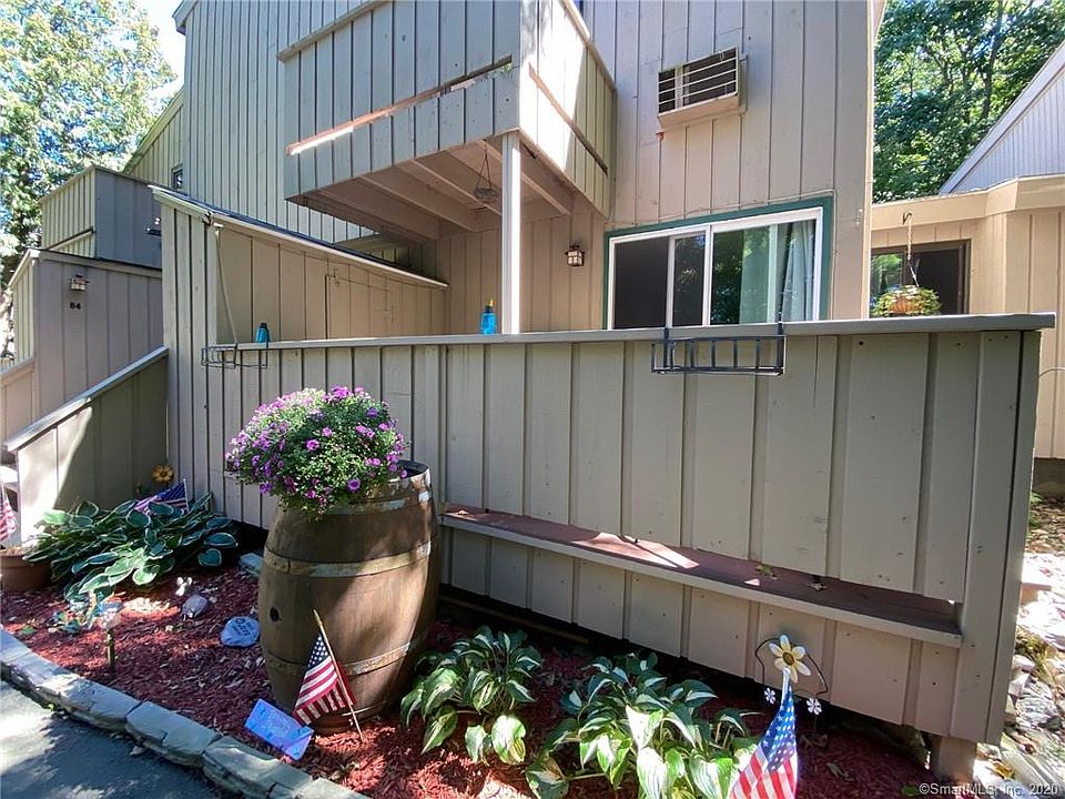 Very private unit with good space. Seasonal water views and close to Lake Quonnapaug and walking trails. Reserved parking close to unit for 2 cars plus guest parking nearby. Cherry floors on main level. Light and bright. Large sliders walk out to a very large private deck overlooking gardens. Updated kitchen and powder room with a first floor washer and dryer. The spacious Master Bedroom offers a private balcony, walk in closet, and large skylight with soaring ceilings for a bright and airy feel. This unit offers excellent storage. Complex is FHA approved.