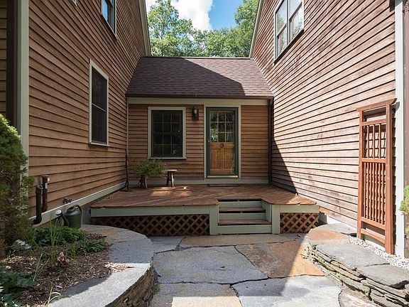 Field, Forest and Views ~ Spacious Cape in a beautiful and serene country setting in Westhampton designed for expansive living. With the newer addition of a great room in 2004, this house has room for everyone! The generous kitchen features new stainless steel appliances and dining area that looks out onto the large deck and wooded back yard with winter views of Hanging Mountain. Living room features built-in bookcases, wood stove and french doors. 1st floor master bedroom w/ bath and a 2nd bedroom currently used as an office. Dramatic cathedral ceilinged family/great room, w/sleeping loft , full bath, deck access and stairs leading down to the oversized garage. Upstairs are 2 more bedrooms,office & 3rd bath. The sprawling 4+ acres w/900' of frontage features a 4 stall horse barn with tack room, pasture, paddock and riding ring and abuts a year round brook with native trout. Nature trails and great bike routes out your door and yet just 15 minutes into Northampton!