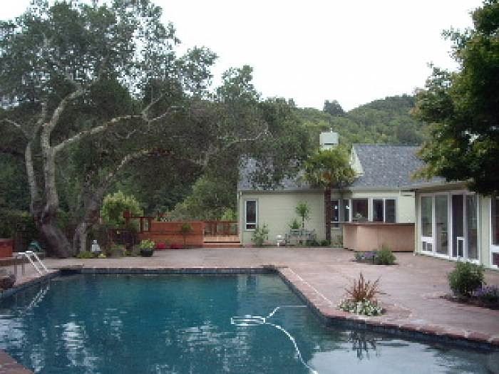 Gorgeous, private, executive home sitting on a mostly level one-half acre of beautifully landscaped grounds, with solar heated swimming pool, hot tub, and fully equipped barbeque area for entertaining.Other amenities include:* Marble floors in entry way, lliving room, dining room, family room and kitchen* Beautiful designer light fixtures throughout* Custom built rock wall with double sided fireplace * Four flat screen TV's throughout the house and built-in sound system with WiFi* Huge master suite with fireplace, office, and and large walk-in closet in separate wing of the property with all marble flooring* Three bedrooms and two bathrooms located in other wing, including a baby's room with custom hand-painted mural* Kitchen with top of the line stainless steel appliances with two dishwashers and chef's gas cooktop* Laundry room with pantries and front-loading large capacity washer/dryer* Large two car garage with off street parking for 4 or 5 more cars* Additional workshop off of the garage* Large play house or artist's studio on the lower level of the lot* Mature oak trees among the wonderfully landscaped, peaceful gardens, yet close to downtown and major thoroughfare - 20 miles to San Francisco Financial DistrictAvailable 7/1/14. No Smoking!Please call Bayside Management at 415-383-8400 x530 for more information or to schedule a showing (24 hr. notice required).