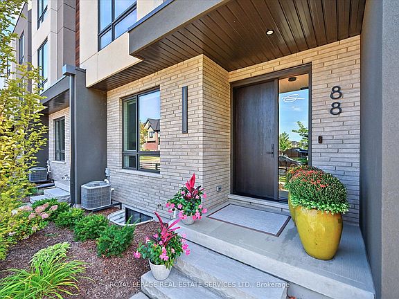 EXQUISITELY FINISHED ACROSS ALL FOUR LEVELS WITH PRIVATE ELEVATOR! Discover this luxurious Rinaldi Homes three-storey end-unit condominium townhome in the heart of sought-after Fonthill. Offering refined style, premium finishes, and thoughtful design, this residence delivers the perfect blend of comfort and sophistication. The main level features a versatile den or third bedroom, a spa-inspired three-piece bathroom, and inside access to the two-car garage. Designed for modern living and entertaining, the second level showcases 9' ceilings, a spacious living room with a custom feature wall and electric fireplace, powder room, and a dining area open to the chef's kitchen. Here you'll find quartz countertops, a central island, walk-in pantry, Fisher & Paykel stainless steel appliances, abundant cabinetry, and a walkout to a private terrace with retractable awning. Upstairs, the third level boasts a primary bedroom with a walk-in closet and designer five-piece ensuite with double sinks and two-person shower. A second bedroom with dual closets enjoys its own modern four-piece ensuite, while laundry is conveniently located on this floor. The finished basement extends the living space with a versatile recreation room, luxury vinyl flooring, and generous storage. Notable highlights include open riser staircases, engineered hardwood flooring, oversized windows that flood the interior with natural light, heated floors in third level ensuite bathrooms, 12" x 24" tile at the entrance, and remote controlled Hunter Douglas window coverings. Residents enjoy low-maintenance living with a monthly condominium fee of $280 covering water, grass cutting, weeding, and snow removal. Walk to downtown Fonthill, Meridian Community Centre, shops, restaurants, parks, and trails, with easy access to Highways 20 and 406 for commuters. A rare offering that combines modern design, quality finishes, and convenience in the heart of Fonthill!