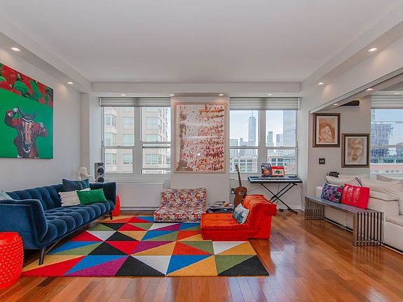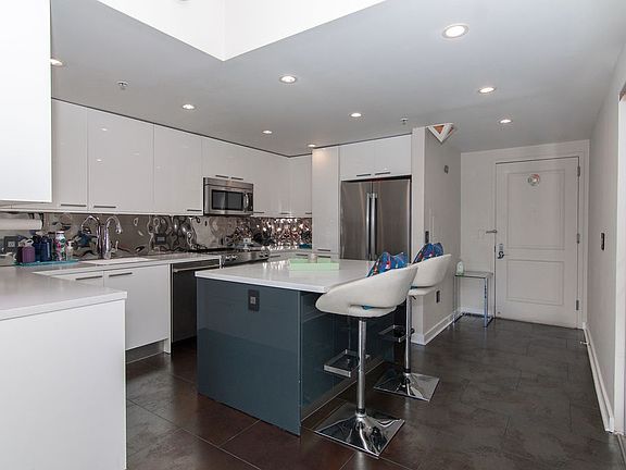 Truly unique one of a kind sprawling home consists of two units, beautifully merged together, in a premier full service luxury condo building on the Waterfront. Located in the South East corner, you'll enjoy NYC Views and incredible light through oversize windows. This 3 bed, 4 bath home with 2350 sq ft feels like a single family, with plenty of room to spread out in 1 of 4 separate living spaces: living, family, den or recreation room. The modern kitchen design includes a premium SS appliance package, Bosch dishwasher, ultra chic stainless steel backsplash and Quartz countertops. The king size master bedroom has en suite bath and dual walk in closets. All bedrooms have custom full blackout Hunter Douglas blinds. All baths have been designed with luxurious Porcelanosa finishes. Guest bedroom with en suite located on the far side of home for privacy. Other features include: 10' ceilings, overhead recessed lighting in all rooms, Legrand dimmer switches, custom mini bar, full size front load Bosch W/D and fully pre-wired entertainment HUB. Building amenities include: 24 hour concierge and doorman, fitness center, outdoor pool and sundeck, indoor grotto, steam room, sauna, screening rm, game rm, children's play area and more. Walking distance to all NYC public transportation, dining and shops.