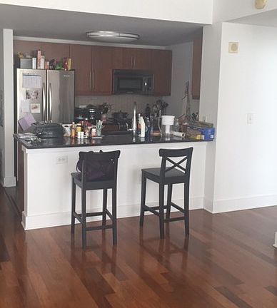 Bright and spacious one bedroom at the sought after Trump Plaza building. Apartment features include an open layout with a large kitchen with breakfast bar, stainless steel appliances and granite counter tops. Other features include hardwood floors throughout, ample closet space, a large bathroom and washer and dryer in the unit. Building offers many amenities including pool, health club, community room, sauna, and business center.