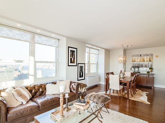 Open Showing on 2/24/2018 from 12-2 by appointment only. Please Call 2122580788 to Schedule. Trump Plaza offers the very best in service and luxury living. This stunning, 2-bed, 2 bath penthouse has a spectacular open floor plan that you are sure to love. Each area flows seamlessly into the next, making it perfect for entertaining. The chic living room has bright windows that offer an incredible view of the city skyline, and fill the room with an abundance of natural light. Ideal for visiting, reading or just plain relaxing. Neutral colors make for ease in decorating, and sparkling hardwood floors can be found throughout. Savor gourmet cooking! Lustrous granite countertops, sleek stainless-steel appliances, and beautiful cabinetry adorn the open, eat-in kitchen. Enjoy family meals in the vibrant dining area, or have a snack or quick meal on the kitchen island. The efficient design is ideal for today's casual, fast-paced lifestyle. Wake up to the sunshine, sounds of the city, and a stunning view each morning in your sumptuous and serene master suite. This is the perfect place to rest after a long day. Elegant master bath has a luminous double vanity, and a splendid glass-enclosed, walk-in shower to unwind in. The second bedroom is ready to personalize, offering comfort and style. Turn it into a guest suite or home office. First class amenities include: heated outdoor pool, full-service gym and classes, 24-hour doorman, concierge & security, Aqua Grotto Spa with whirlpool, sauna & steam room, sun deck, Virtual Golf & Game Rooms, Catering Kitchen & Screening Rooms, Kids' Playroom, outdoor playground, valet parking, and so much more! Convenient access to the PATH trains to WTC & 33 Street, NY Waterway Ferries, NJ Light Rail, shopping, dining, and entertainment. Call today to schedule your private showing.