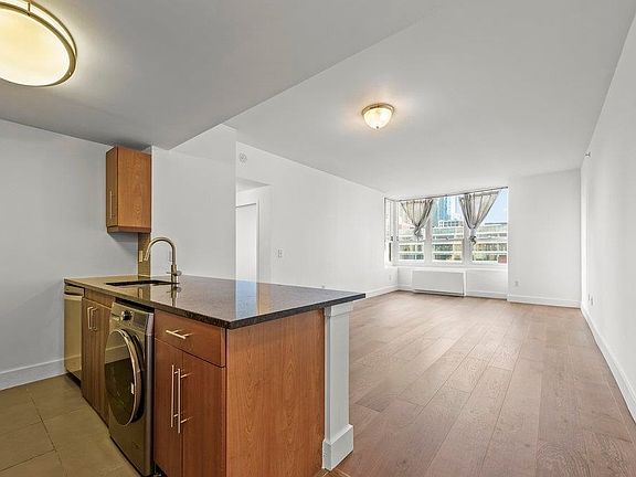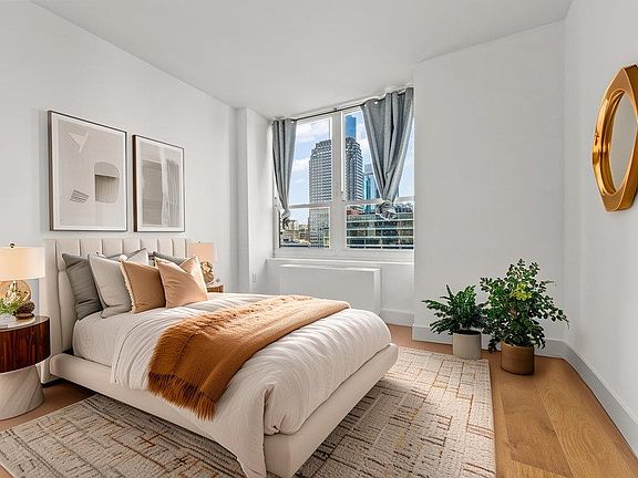 Be the first to enjoy this home, which boasts an impressive 10-ft high ceiling and a complete, top-to-bottom renovation. The unit features brand new flooring, fresh paint, and an updated kitchen and bath with new vanity and new tiles. All major appliances are recently replaced: the dishwasher and the in-unit W/D combo were new in 2023, and the refrigerator was new in 2024. You'll enjoy abundant sunshine with south and east exposure, framing amazing views of the Freedom Tower. The well-maintained layout includes an over-sized walk-in closet and generous living and storage space.