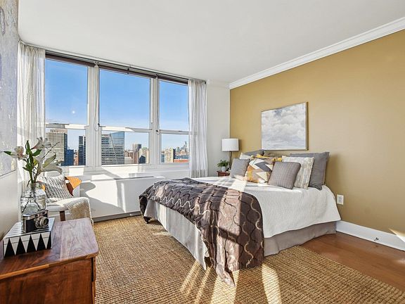 Welcome to 3202 at 88 Morgan, elegance on the waterfront. Nestled on a high floor, the views of Midtown Manhattan are stunning & captivating, the sunsets from the bedroom are warm & tranquil. This is Where You Want to Live!! 3202 was designed with a rare combination of three exposures: east, north and west, with the greatest number of windows out of all the one-bedrooms in the building. This lovely 837 sqft one bedroom has a wide, open-floor layout with a generous size kitchen, cabinetry, and counterspace. The closet space and stackable washer dryer combo are a must have. The carefully curated shaker cabinets, granite counter tops, wide plank flooring and tastefully fabricated wainscoting make this a special home adorned with style and grace. You have every convenience to live here comfortably.