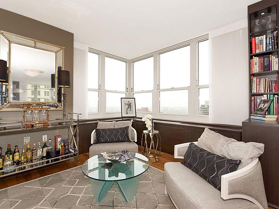 Rare opportunity to own this beautiful corner unit condo located on the 43rd floor of Trump Plaza Residences. The owners of this unit worked directly with the builder's architect to create this truly unique floor plan designed for everyday comfort and special occasion entertaining. Centrally located in the Powerhouse Arts District in downtown Jersey City, you will find yourself near multiple PATH stations, Light Rail stops, Newport Mall, Hudson Waterfront and Marina, and a multitude of restaurants, shops and boutiques within walking distance. This huge 1,680 square foot 2 bedroom condo (currently being used as a 1 bedroom) has expansive panoramic views of the Hudson River, New York skyline and surrounding area, and breathtaking sunrise and sunset views. The large open dining room, spacious living room, adjoining entertainment area with built-in wet bar, and separate media room/office offer a maximum of living space. Additional features include a contemporary kitchen with stainless steel appliances and custom granite countertops, 2 full bathrooms (one with a separate enclosed shower and bathtub, and one with a glass shower), an in-unit washer/dryer, and custom cabinetry and closets throughout. The space flows freely from one area to another - all with stunning views. This is a full service building with a 24-hour doorman, full time concierge, and 24/7 security. Amenities include a pool, grotto, steam room, sauna, full gym, virtual golf, children's playroom and playground, meeting/gathering room, and an event kitchen/dining area. Parking is available on premises.