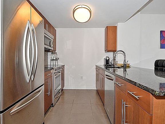 Gorgeous 1 Bedroom 1 Bath Condo located in the Trump Plaza! Gourmet kitchen boasts cherry cabinets, stainless steel appliances, granite counter tops, and an eat-in breakfast bar! Hardwood floors throughout and washer/ Dryer in unit. Building includes 24 Hour Doorman and Concierge. Fitness Center, Billiards Parlor, Virtual Golf Simulator, Dining Room and Screening Room. Outdoor Heated Pool and Sun Deck. Indoor Aqua Grotto Spa with Sauna and Steam Room. Close to all NYC transportation