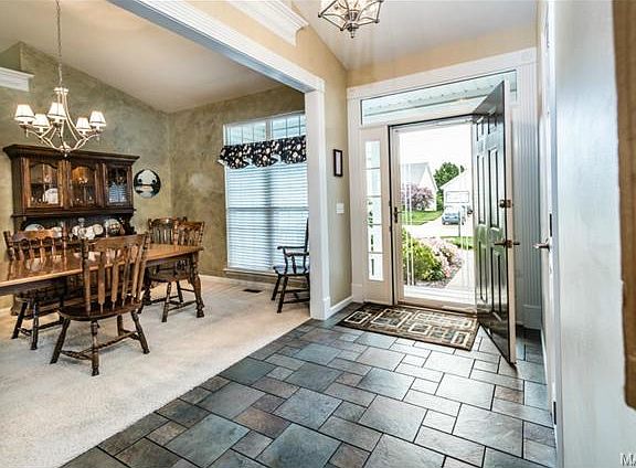 Welcome to this fabulous lake front atrium ranch home, located in a highly sought after neighborhood. The main entry welcomes you into the great room and dining room flanked with double fluted cased openings. Two additional bedrooms and the spacious master suite are joined off a media room with built-in desks and a potential fourth bedroom. The kitchen is perfect for entertaining with its gorgeous views of the lake out the floor to ceiling windows. The open staircase leads you to the lower level, which is ready for your finishing touches & features rough-ins for wet bar, additional bath and walk-out access onto the beautiful brick patio. Enjoy grilling on the covered deck overlooking the professional landscaped yard and the fully stocked lake. This meticulously maintained home features many upgrades such as vaulted ceilings, upgraded wood flooring, double coffered ceiling in the master suite, 3-car garage, central vacuum system & much more. You'll have to come see it all for yourself!