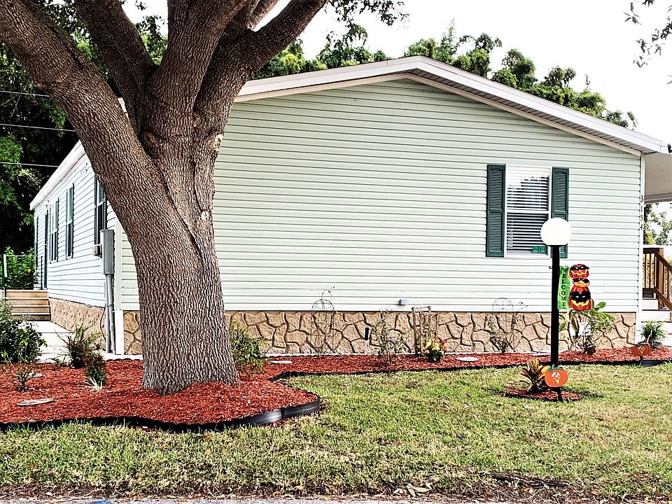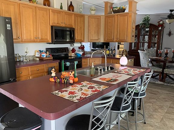 This home features a beautiful back porch with views of lots of nature with only one neighbor!, with entry into the very spacious and open floor plan. The kitchen features an over-sized island, with an immense amount of modern cabinetry for all your storage needs and black stainless steel NEW appliances. Full size laundry room located inside the home. Over-sized Master bedroom has a huge private bath with walk-in shower and garden tub. The other two bedrooms are the perfect size for guests or office spaces; and the second bathroom with a shower tub combo is conveniently located for easy access. Your car is close and out of the elements in a private covered carport next to your spacious utility shed/room. This home retains the value of peaceful living. Location, location, location... this beautiful home is located on a desirably tranquil corner lot in Sugar Mill North, an exclusive, active, age-qualified 55+ resort. Lot Rent $422. The Community offers a swimming pool, playground, parking storage and a clubhouse that hosts a multitude of resident activities.