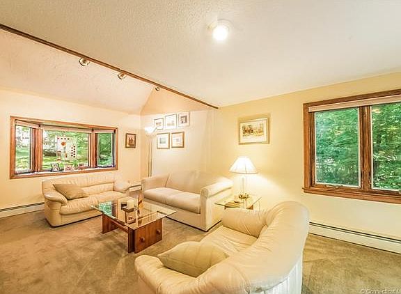 Adorable cape in popular neighborhood close to Granby line. You will love the open layout and stunning maple and granite kitchen. Skylights bring in lots of natural light and the mini split ac system keeps you comfortable in the summer. The 2006 furnace can powered by oil or an attached wood stove for winter savings. Meticulously kept and updated so you don't have to! Other renovations completed in the last few years include Andersen replacement windows, new front door, roof, siding, bathrooms and a new driveway. The town has this listed as 3 bedrooms but the layout lends itself to flexible living arrangements. The loft bedroom is currently used as an office and the first floor bedroom used as a separate dining room. The family room has a separate entrance off the attached garage and a closet so more options available here. Need more room? The basement has high ceilings and a walkout, just waiting to be finished. Hartland does not have it's own High School so offers a voucher to attend any other in CT, a great way to be in a great school district and save on property taxes!