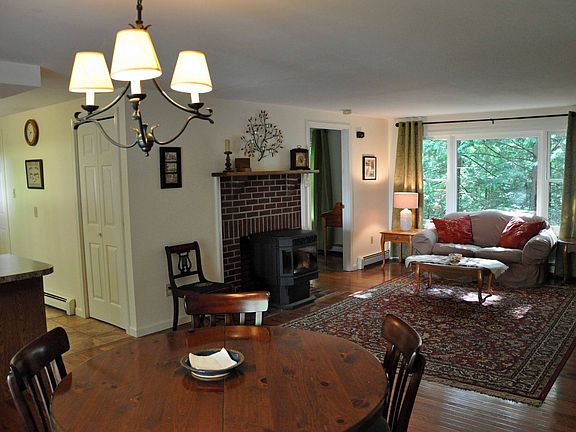 Unique three bedroom Cape set on a private 6.5 acres!! The custom woodwork in this home is outstanding from the floors to the kitchen cabinets, to the doors and ceilings! The foyer with transom windows leads to a spacious living room with oversized windows, custom wide-board floors and coffered ceiling made with Eastern Pine. The wood floors continue into the open dining room and family room with pellet stove! Off the family room is a brand new three season room addition with French doors, cathedral ceiling, transom windows and beautiful custom floors. Brand new kitchen with handmade custom wood cabinets, Soapstone countertops and island, stainless steel appliances, pantry with built-in desk and cabinets. Inviting 1st floor master bedroom with oversized windows, large walk-in closet and a beautiful brand new master bath with large glass door shower and custom cabinet with double sink and ceramic tile floor. The second floor, features a separate heat zone, large hall with custom built-ins and walls with wood accents, two large bedrooms both with hardwood floors a full bath with tub/shower combination. Mudroom with ceramic tile floor, main floor half bath, main floor laundry room with utility closet. The lower level features a second pellet stove. Attached one car garage with custom built doors. Site work complete for a new garage or barn to be constructed. The quality of craftmanship is incredible in this home and it is truly a must see!