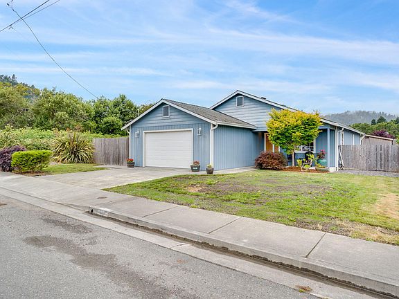 OPEN HOUSE Thursday 7/13 4:30-6PM. A must see in sunny Rio Dell! Come tour this inviting 3 bed 2 bath home with new upgrades. Inside you will find vaulted ceilings and an open floor plan in the living room and kitchen. Be the first to use the new kitchen featuring brand new custom olive toned cabinetry, silky white concrete counters, and a Forno 6 burner stainless steel range. Extra cabinetry along the far wall is a welcoming addition with a perfect spot for a coffee bar or buffet. Enjoy your gorgeous and sleek bathroom featuring a walk-in beautifully executed tile shower, good lighting, and finished with modern gold fixtures. The spacious primary bedroom has a functional split bathroom and walk in closet. Outside, the yard has a built in sprinkler system and fully fenced back yard with a large shed. Centrally located with close access to the freeway, stores, and parks.