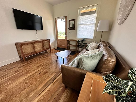 Note: Water, trash & recycling pickup, and yard care are included in the rent. Tenant will be responsible for paying for electricity & internet service. New green-built home (finished in 2023). This two bed/1bath home is stylishly furnished and features hardwood floors, stainless steel appliances, granite countertops, and more. One bedroom has a queen size bed while the other bedroom flexes between office space and a guest bedroom with a murphy bed and motorized stand/sit desk. Location: Central to everything, but tucked away on a quiet dead end street. Walking distance to restaurants, breweries, coffee shops, and the Wilma Dykeman greenway. Minutes from the interstate, downtown, and Mission Hospital. Enjoy sunrise on the spacious back deck or sunset on the front porch with views of the surrounding mountains. Please note: this unit is located over a garage (not included) and an efficiency apartment. Climbing stairs is needed to reach the front door. Rent includes electricity and water. Tenant will be responsible for their own internet service (Spectrum high speed available). $250 non-refundable cleaning fee and refundable security deposit equal to one month's rent. No pets, no exeptions.