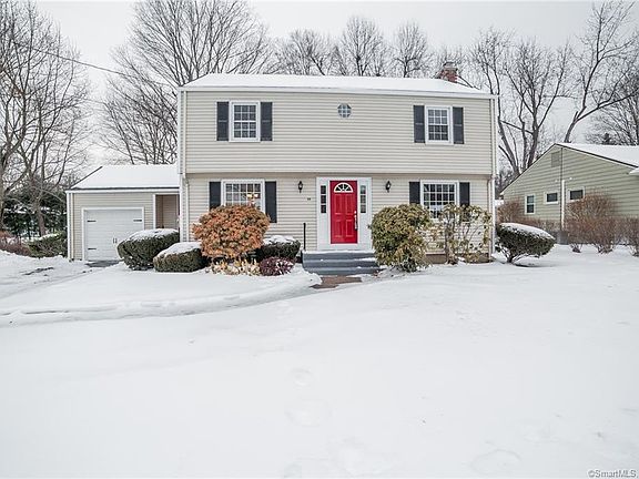 Beautifully updated sunny center hall colonial with front to back living room with fireplace, brand new kitchen with white cabinets, granite counter tops, granite breakfast bar, tile back splash and stainless steel appliances. Both bathrooms are nicely updated, freshly painted interior, refinished hardwood floors, replacement windows, new light fixtures, and brand new roof. There is also a first floor laundry room off of the kitchen, central air conditioning, updated partially finished basement with heat and vinyl sided exterior. This home is in move in condition.