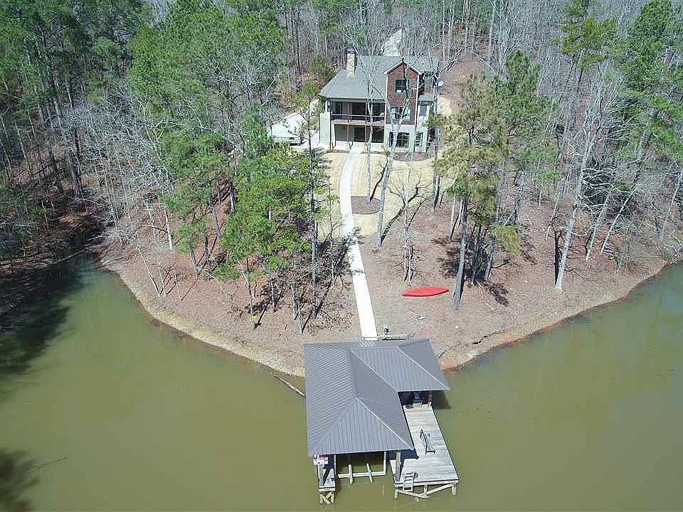 Custom built beautifully furnished home on the South end of Lake Wedowee sitting on 3+/- wooded acres! 576 feet of private shoreline is yours to enjoy. 5BR/4BA home has open floor plan that invites you in to enjoy lake time! Vaulted ceiling in the great room with double sided fireplace is open to the kitchen and dining area. Upgraded stainless appliances and cabinets with beautiful granite counter tops. Sun room off the living area to take in all the lake offers! Master bedroom suite on the main level. Guest room and full bath on main, with 2 bedrooms and full bath on upper level. Terrace level has one bedroom and bath and oversized 2 car garage. Easy walk to the stationary covered dock with boat lift in your private cove. Sold furnished!