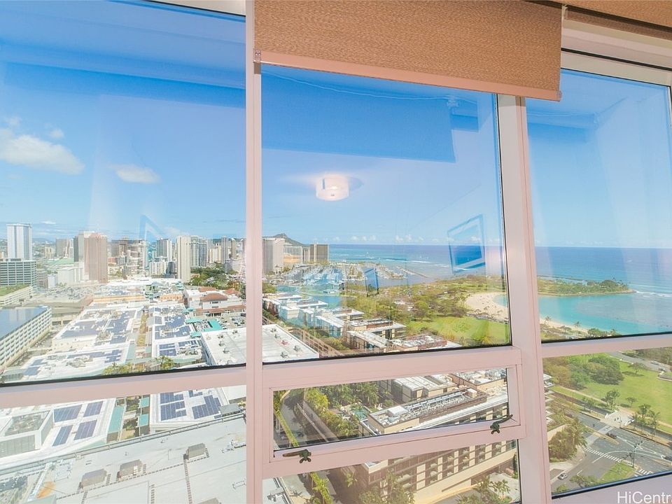 Popular condominium "Hawaiki Tower" 2bed/2ba/2 parking stalls, Ko'olau Mountains, Sunrise, Diamond Head, Ala Moana Beach and gorgeous panoramic views from the room. ”07” unit is an open floor plan with floor-to-ceiling glass with incredible views!