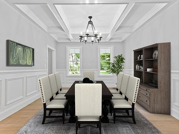 - Din Dscrp: Flooring - Hardwood, Wainscoting, Ceiling - Coffered, Lighting - Overhead, Crown Molding