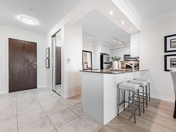 Welcome to this beautifully updated condo located in the heart of Thornhill, offering a perfect blend of style, comfort, and convenience. This spacious unit features 2 bedrooms plus a den/office, ideal for working from home or accomodating guests. Enjoy a bright, open-concept living space with large windows overlooking a serene parking settting, flooding the home with natural light. The ideal kitchen is a chef's delight, complete with granit countertops, stainless steel appliances, and a convenient breakfast bar _ perfect for casual dining and entertaining. The generous primary suite is a true retreat, featuring a large walk-in closet and private ensuite bathroom. The second bedroom is spacious and bright, while the den offers excellent flexibility as a home office, guest room, or reading nook. Luxury amenities in this well-managed building include a 24-hour concierge, magnificent lobby, state-of-the-art fitness centre, and a sparkling indoor pool. Close to top-rated schools, shopping, restaurants, and public transit, this condo offers an unbeatable location and an exceptional lifestyle in one of Thornhill's most desirable communities.
