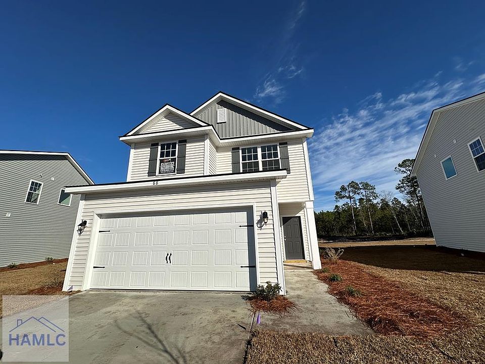 Nestled in the delightful community of The Glen at 15 West, the Terrell plan is a 3-bedroom, 2.5-bathroom patio residence covering 1455 square feet. As you step inside through the foyer, you're greeted by a family room boasting an electric corner fireplace and an adjacent dining area. The kitchen bar overlooks the dining space, with a practical area behind it ideal for meal preparation. Upstairs, two bedrooms, one featuring a walk-in closet, share a hall bath with the laundry room conveniently placed across the hall. The primary bedroom boasts an impressive en-suite complete with a spacious walk-in closet, water closet, separate shower, and garden tub. Artistic renderings are provided for informational purposes only, and the actual floor plans and inclusions may vary.
