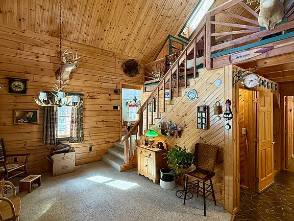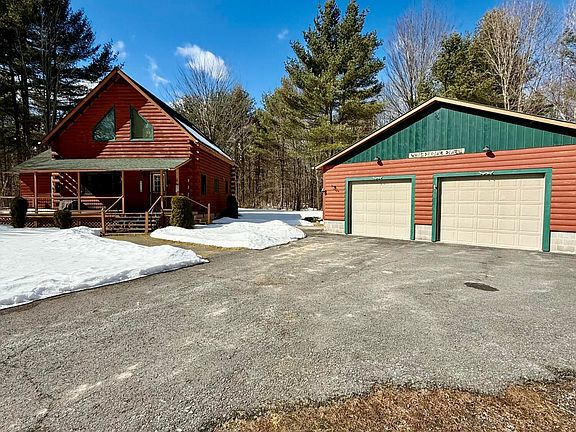 Welcome to Camp Whispering Pines! This adorable well maintained cabin sits on a 7.57 acre private setting. There is an oversized detached garage with 3 parking bays, park your cars in the front and bring your equipment/toys through the door on the side. The cabin itself has a comfortable covered front porch, and nice side deck for those summer nights. Inside you'll find 2 living areas, kitchen, bed and bath, and a loft that can be utilized as a second bedroom or office. The basement offers ample storage and allows exterior entry through bilco doors. This home features beautiful woodworking and offers that cozy cabin feel. Whether you want a cozy home with a shop for working or storage for your toys, or an investment property for that adirondack getaway- you wont want to miss this one!