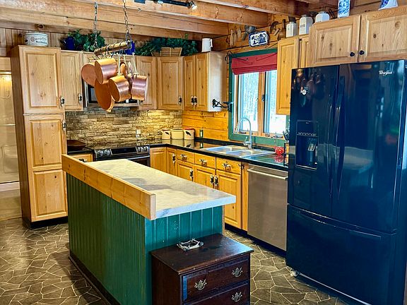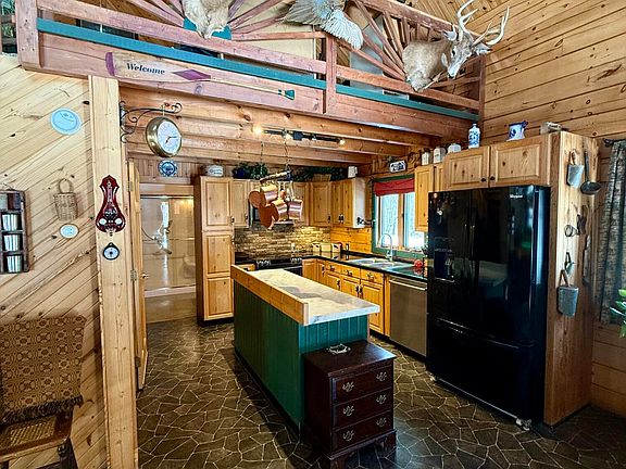 - Beamed Ceilings, Ceiling Fan(s), Kitchen Island, Natural Woodwork, Master Downstairs, Tile Counters