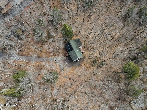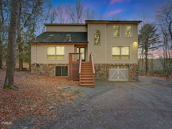 If you're looking for a turn-key retreat in The Hideout, this is THE ONE! Immaculate, fully furnished, and move-in ready, this home offers the perfect blend of comfort, privacy, and charm in the Northern Poconos' premier four-season community. Whether you want to take advantage of the incredible amenities and social activities or simply unwind in your own peaceful getaway, this home has it all.This is a QUALITY custom-built home by renowned Hideout builder Bruce Covey, known for craftsmanship and attention to detail. Sitting on a secluded lot with a long driveway and a greenbelt in the rear, you'll feel like you're in your own treehouse retreat. Inside, the open floor plan, vaulted ceilings, and skylights create a bright and airy feel. The living room is warm and inviting with a propane fireplace, while the kitchen opens to a beautiful sunroom and a rear deck, perfect for enjoying your wooded sanctuary.The main-level primary suite features a walk-in closet and private bath, and hardwood floors and solid wood doors add to the home's high-quality finishes. One of the most charming architectural features is the staircase alcove--a graceful turn leads to a cozy nook with a beautiful window, adding a touch of character as you head up to the huge loft overlooking the living room. This versatile space can easily serve as a 4th bedroom, home office, or additional lounge area.For even more space, the finished lower level offers a HUGE recreation room, a third bathroom, and access to the garage. Plus, with mini-split ductless A/C units in the living area and bedrooms, you'll stay comfortable year-round.This home is special, offering the best of both worlds--privacy and nature with all the benefits of an amenity-rich community. Don't miss this one!