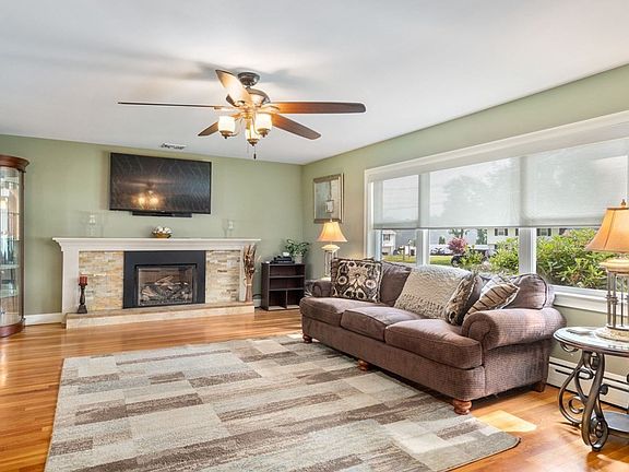 Offers due by 5pm 6/4. Move right into a 9 room custom ranch in a picturesque and highly sought after neighborhood with views of Stearns Reservoir.The bright 3/4 bedroom,3 full bathroom home has gleaming hardwood floors, a gorgeous custom gourmet open concept kitchen with a granite center island plus a granite pennisula accomodating 6 stools,SS appliances, loads of customs cabinets w/ China cab,Pantry cab,Wine rack, neutral tile backsplash and flooring. The large living room & dining area have picture windows letting in so much natural light.There is a stone front gas fireplace & French door to the office. Primary bedrm w/ a remodeled bathrm that has granite,tiled stall shower w/ glass doors.Main bath fully remodeled,too. LL as a bonus rm(used as a 4th bedrm) & a newly updated full bathrm. Finish the oversized LL-Rec Rm/Gym? Entertain on the circular paver patio in the fenced backyard. New AC condenser. Great commuter location near everything in Framingham.Truly a Special home!